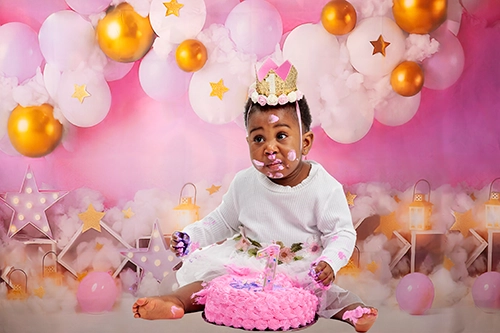 Enjoy a completely hassle-free experience with our sessions. Additionally, we provide the cake and a custom birthday backdrop, ensuring a fun and memorable celebration for your little one without the stress of preparation!
